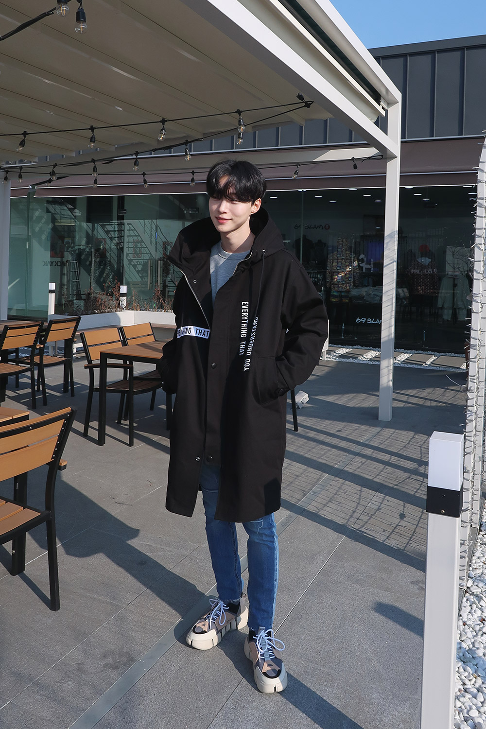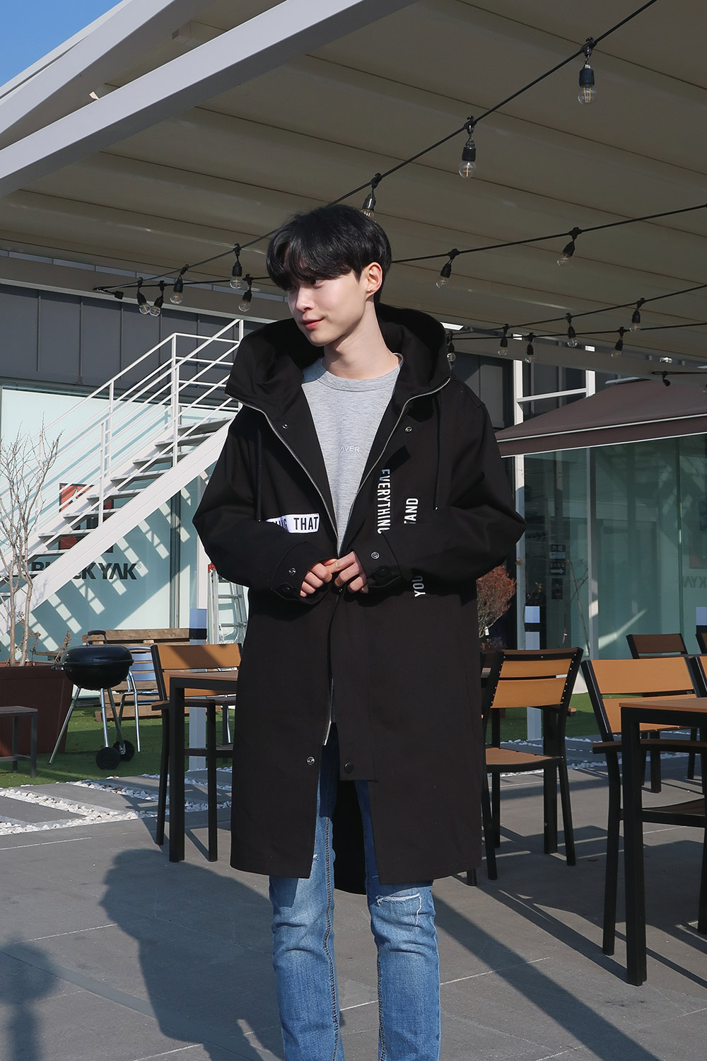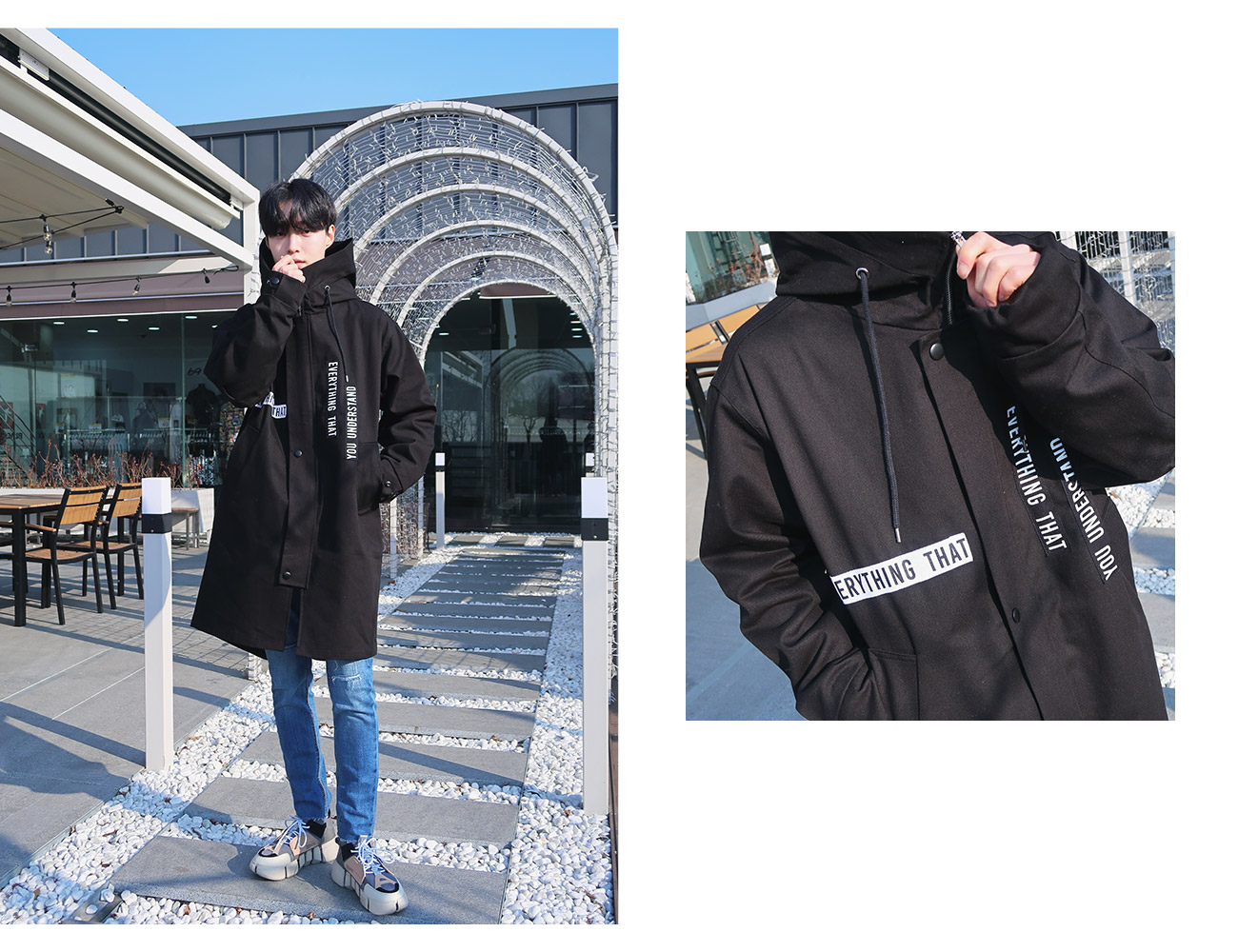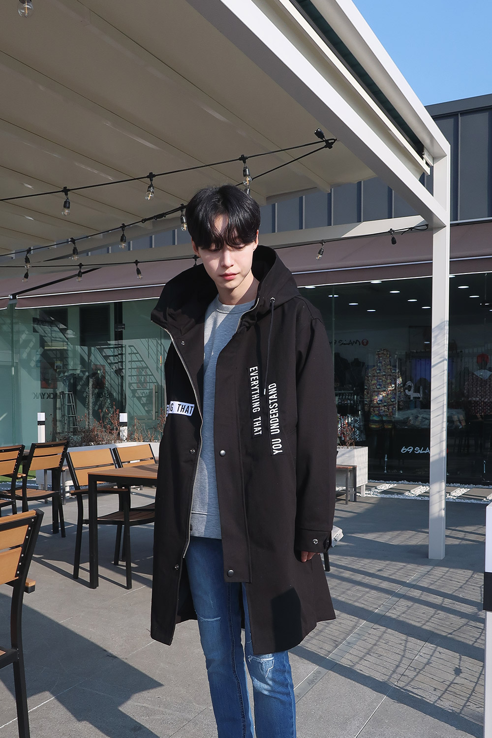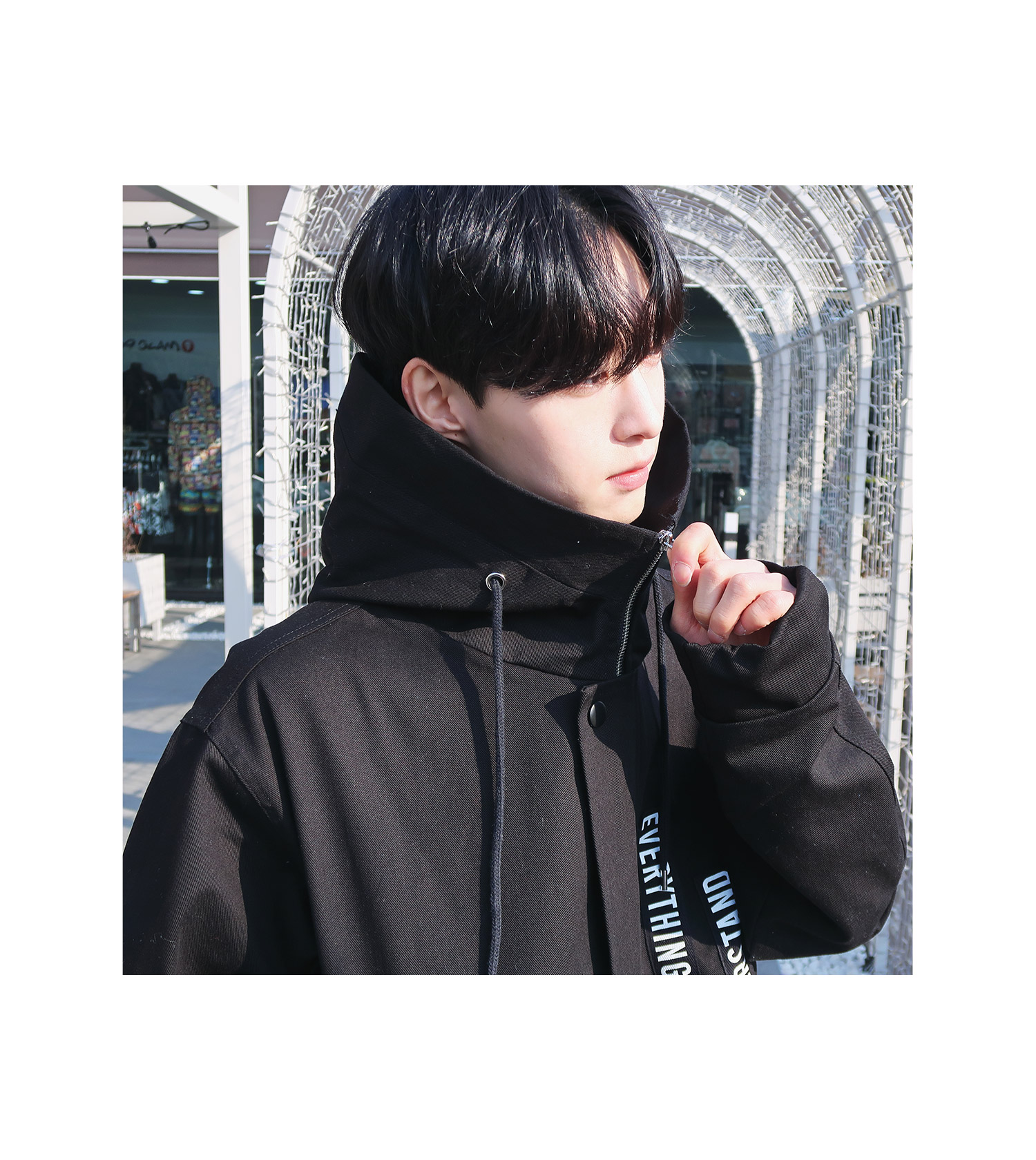 레터링 후드 오버핏야상
