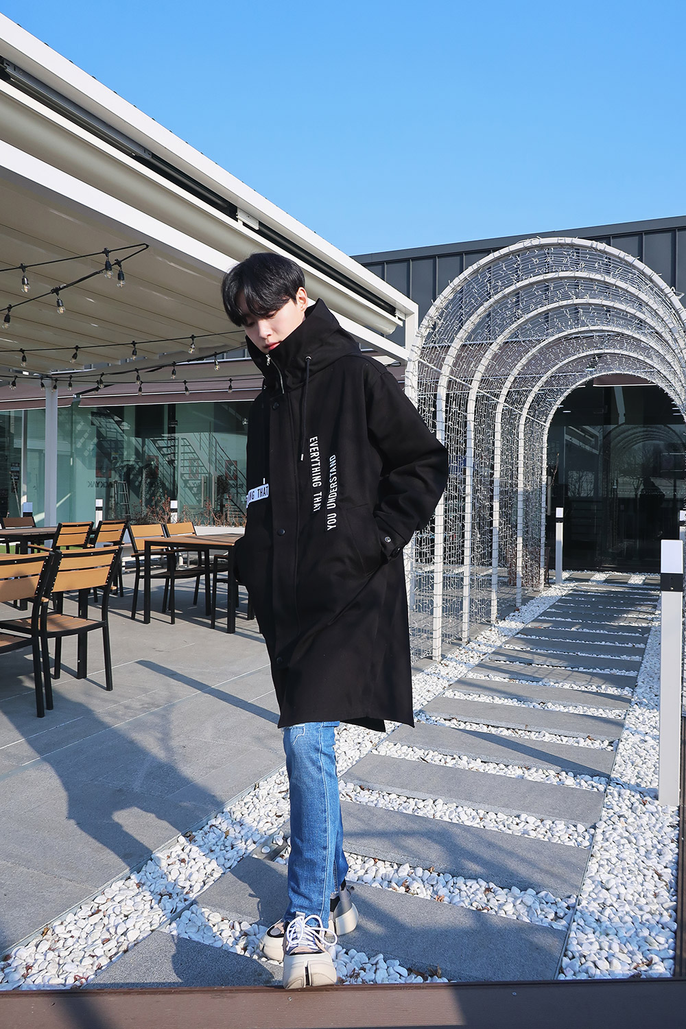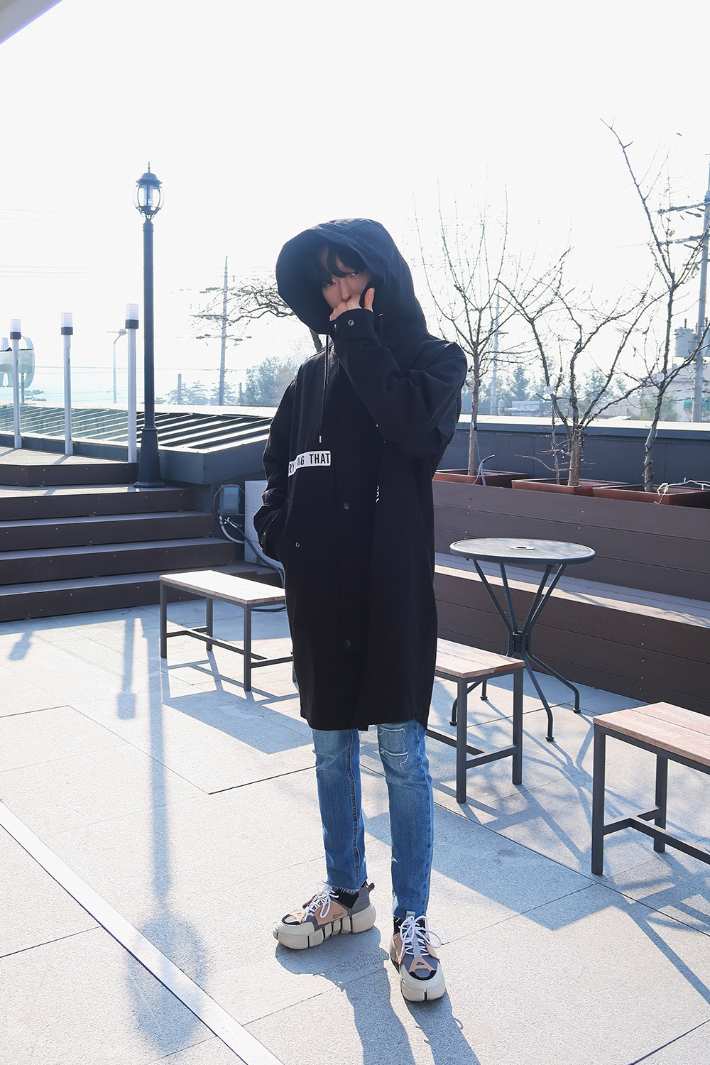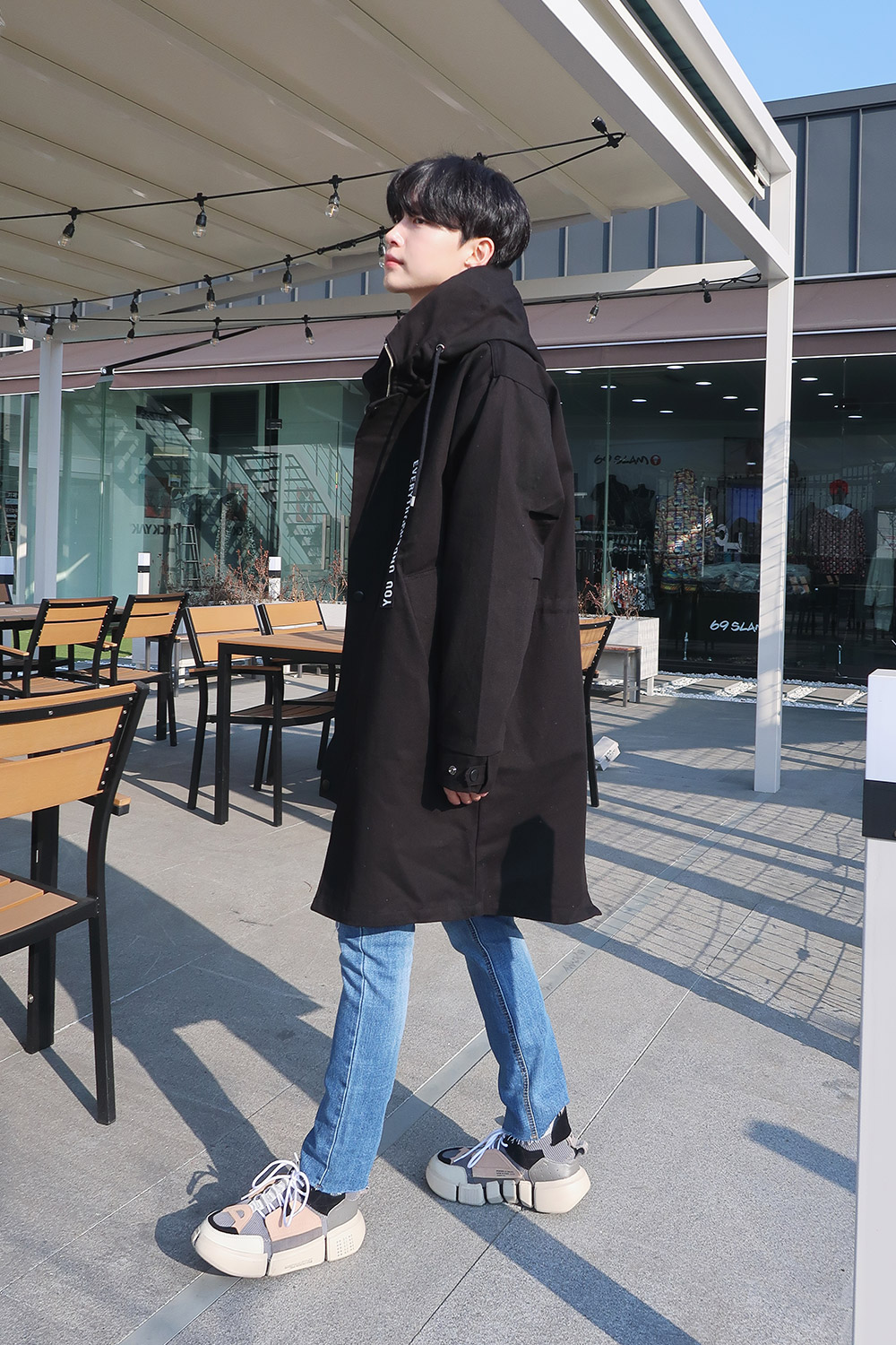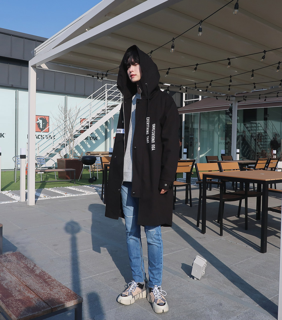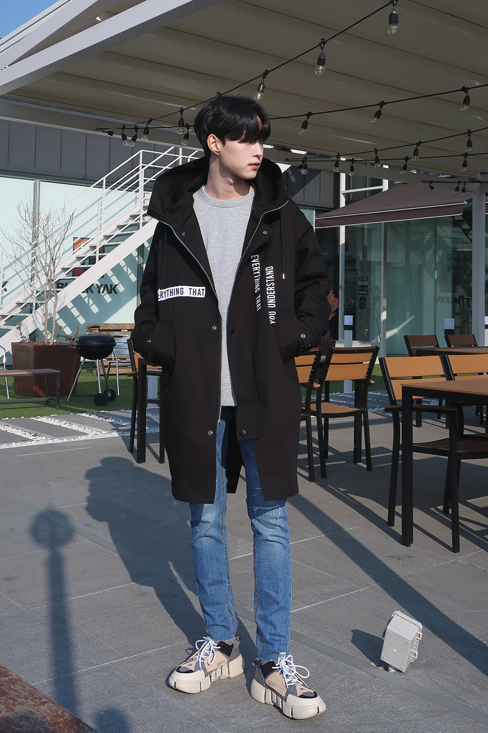 레터링 후드 오버핏야상