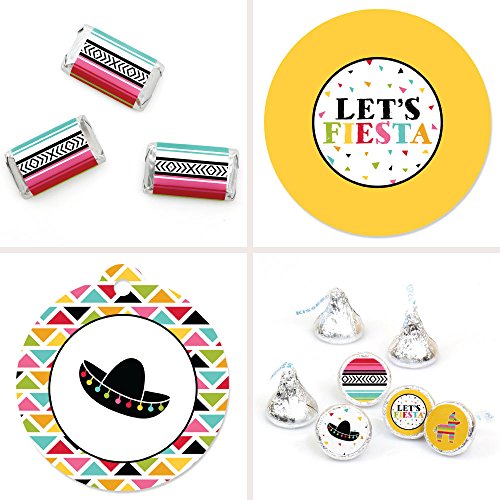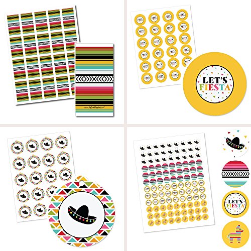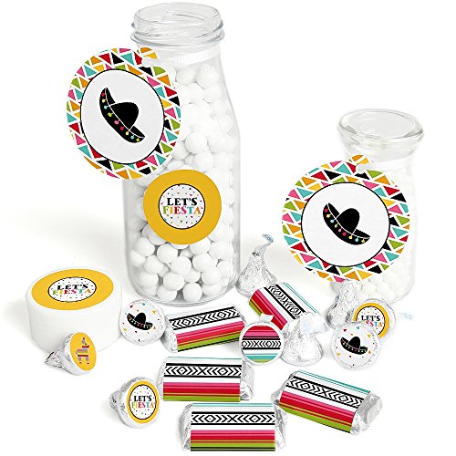 - 172-Piece Let's Fiesta Party Decorations Favor Kit INCLUDES 20 mini candy bar wrappers, 24 circle stickers labels, 20 round tags, and 108 round candy labels – perfect for styling an adorable Mexican Fiesta party. Unique Let's Fiesta party favors are easy with this fun DIY party kit.