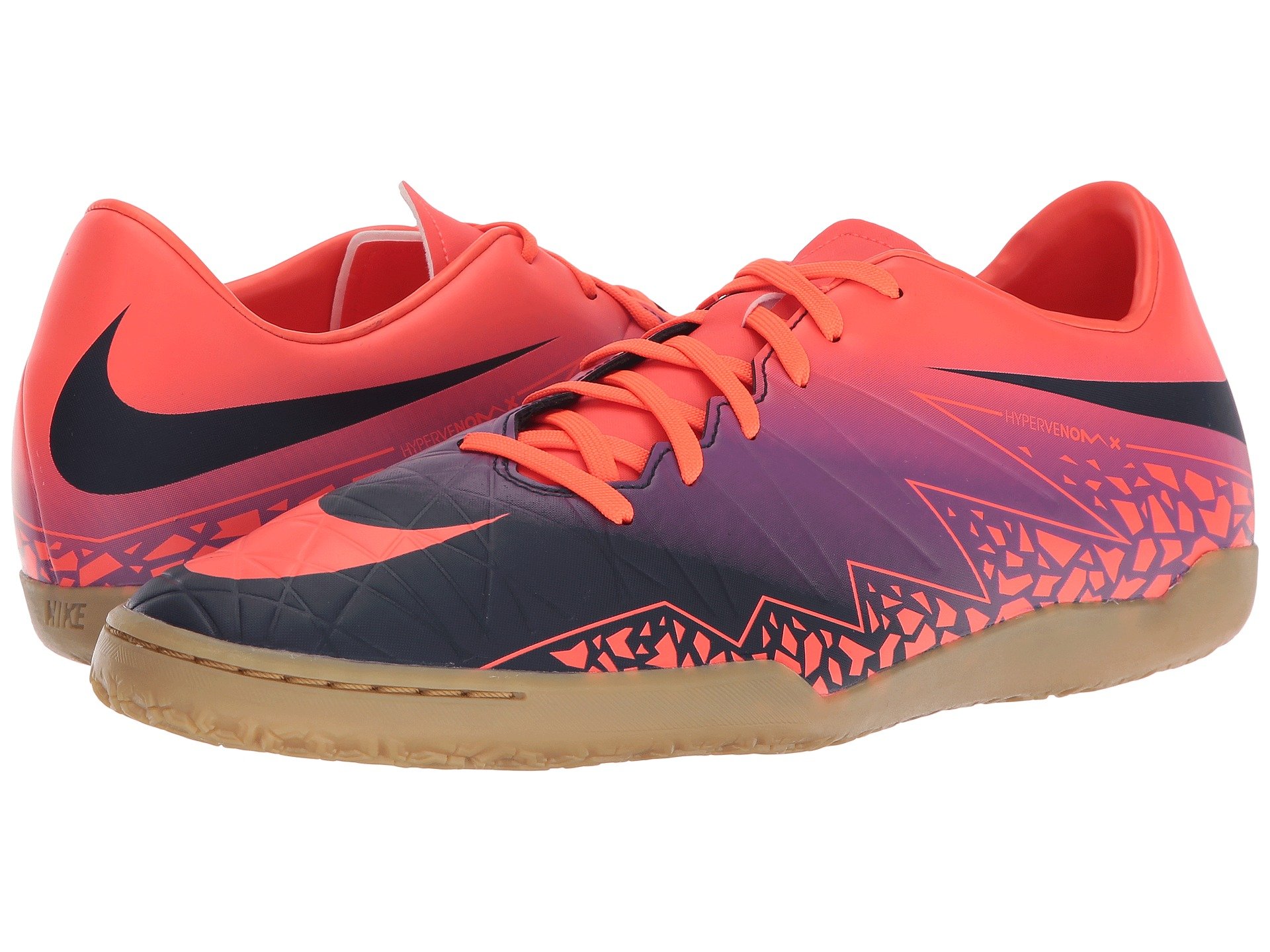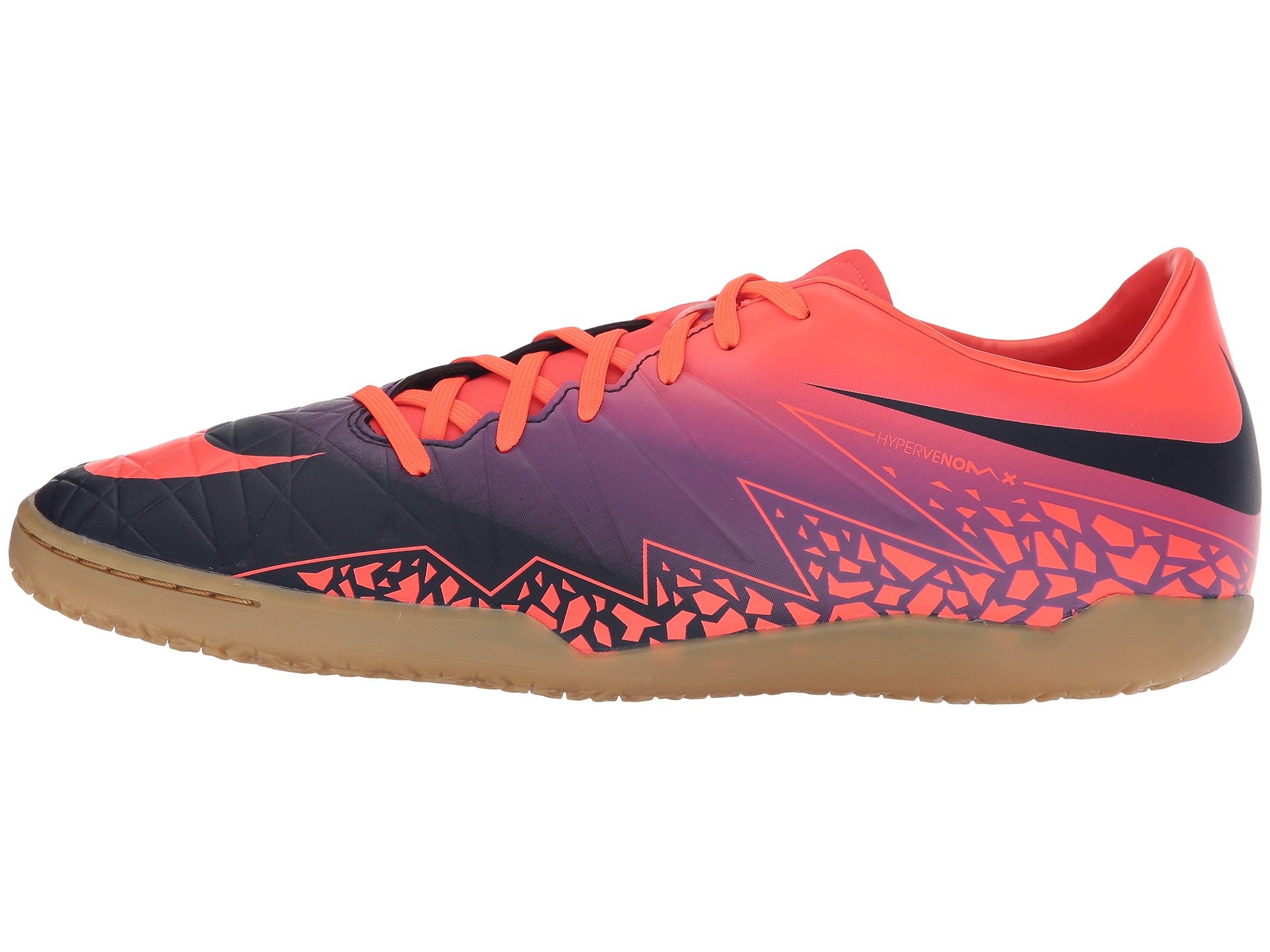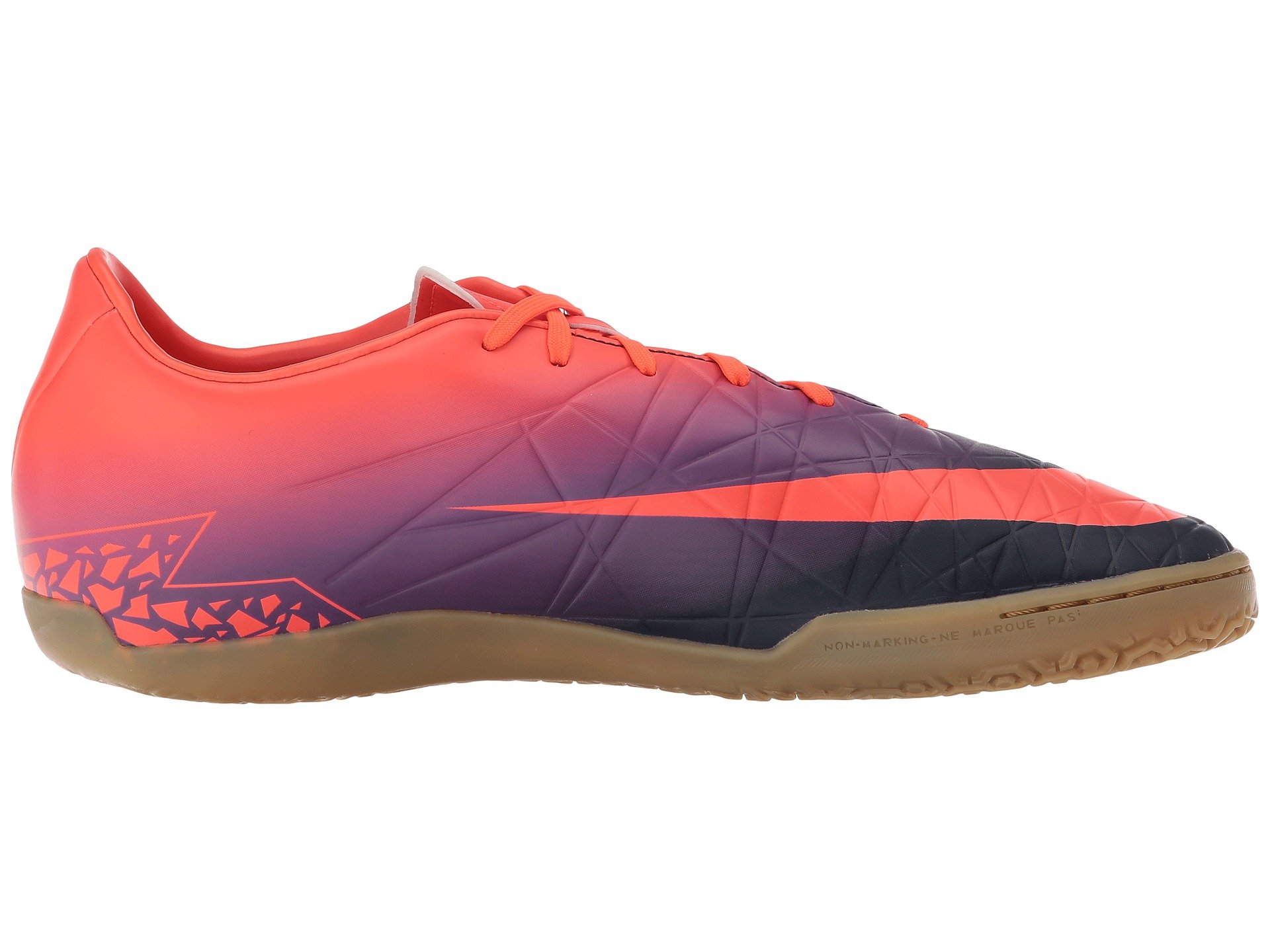 | Product Information SKU: #8532012Getting to the goal is a breeze with the high performance power of the Nike? Hypervenom Phelon II IC soccer boot. Soft, thin synthetic leather upper for a great fit and ball feel.Shortened, asymmetrical lace area increases the size of the vamp and strike zone.Smooth synthetic lining and a textile covered footbed for a great in-shoe feel.Contoured last mirrors the shape of the foot for a glove-like fit.Durable outsole provides multidirectional traction.Agility traction pattern provides faster release and maximum responsiveness.Sculpted flexible rubber outsole for multidirectional quickness and traction on indoor surfaces. Imported.Product measurements were taken using size 11, width D - Medium. Please note that measurements may vary by size.Weight of footwear is based on a single item, not a pair.Measurements: Weight: 11 oz |