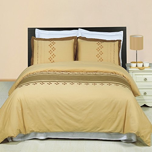 Enhance and improve your bedroom decor with the all new Duvet Set. Tailored for a perfect fit and made with the finest superior single ply yarns for ultimate comfort. Cotton duvet Cover Set is expertly stitched for durability to last a lifetime and raises the bar for coziness and elegance. Our Duvet Spread includes two matching pillow shams to bring elegance to any bedroom. The use of good quality materials ensure durability, while the colours will blend with a variety of interiors. The colors of this set includes a combination of khaki, taupe and bronze Thread Count: Thread count means the number of threads woven together in a square inch. You count both lengthwise (warp) and widthwise (weft) threads. So 150 lengthwise threads woven with 150 widthwise threads produce a thread count of 300. Higher the thread count, softer and finer the fabric. Best for your house or hotels - bedroom, guest room, kid’s room, RV, vacation home. Great gift idea for your friend, sister, brother, partner, mom and dad, on Valentine's - Mother's - Father's Day and Christmas. Lakewood Duvet Cover Set is available in two different sizes namely, Full / Queen and King / California King with 3 pieces each. - The Full / Queen Duvet Set has 1-Duvet Cover of 90 Inches x 92 Inches and 2-Pillow Shams of 20 Inches x 26 Inches