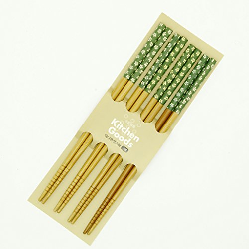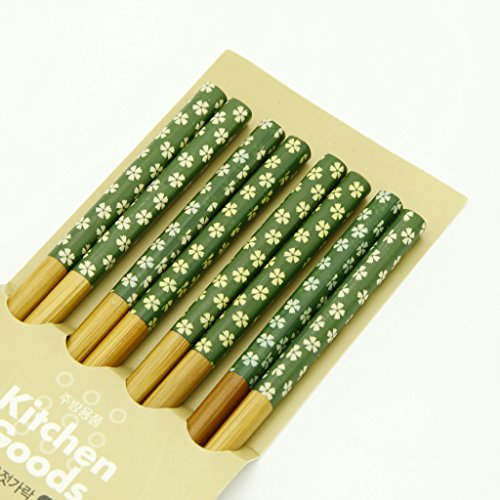 4 Pairs Bamboo Chopsticks Set 9", Anti-slip Design, Japanese Style (green)