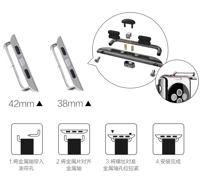 | [해외]2 개 새로운 실버 골드 로즈 골드 블랙 시계 밴드 커넥터 어댑터 애플 시계 스트랩 iWatch 스포츠 38 미리메터/42 미리메터 드라이버 |