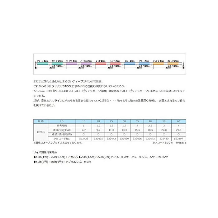 원본상품명: サンライン(SUNLINE) PEライン ソルティメイト ジガ? ULT 4本組スロ?ピッチジャ?ク?用 1200m 1.2? 20lb