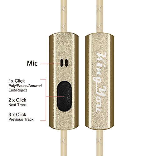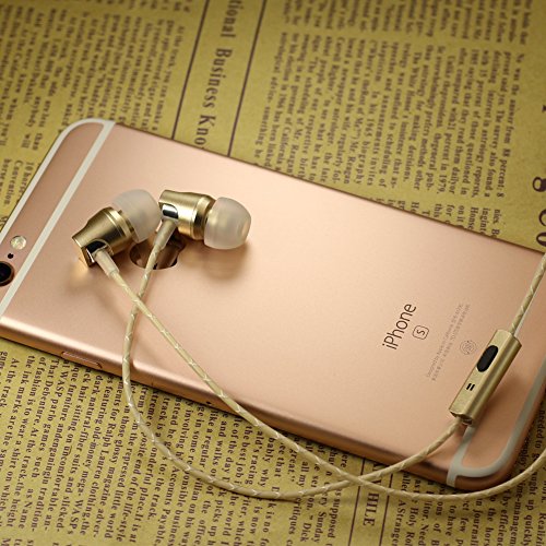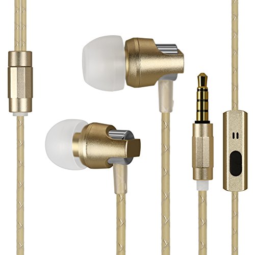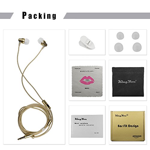KingYou In-Ear Headphones (Earphones/Earbuds/Headset) with Microphone and Remote, Noise Isolating, Heavy Deep Base for iPhone/iPod/iPad/MP3 Players/Tablet/PC (Gold)