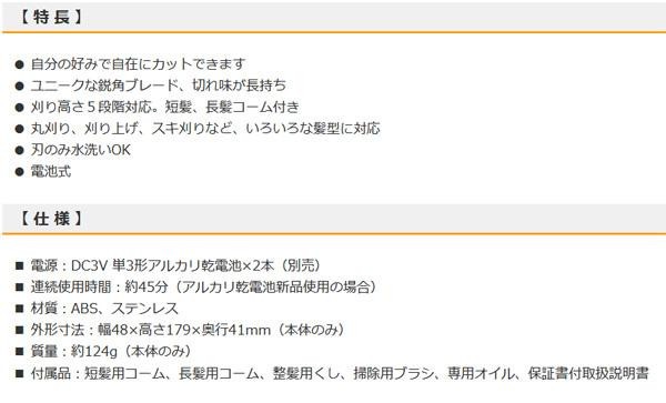 fk094igrjsお好みの長さに自由にカットできるバリカンです サイズ 個装サイズ:24×11×5cm 重量 個装重量:250g 仕様 保証期間:1年間 製造国 中国 いろいろな髪型に対応するバリカン お好みの長さに自由にカットできるバリカンです