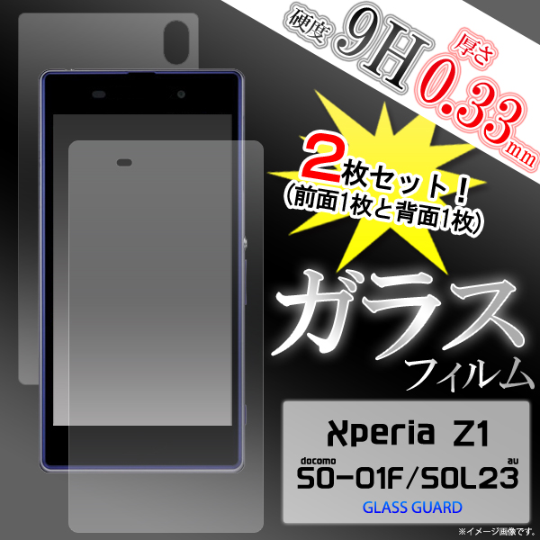 Xperia Z1 SO-01F/Xperia Z1 SOL23の液晶画面と背面を守る液晶保護ガラスフィルム。