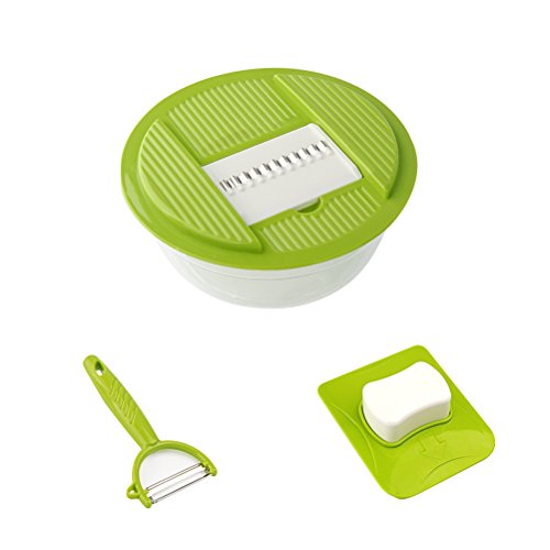 -. Feature : セット内容:みじん切り・スライス・千切り・太い千切り・花型切りの5種類のプレート、ピーラーと安全ホルダー付き、キッチンに不可欠なアイテムです。 / 高品質: BPA無しに食品レベルのABS原材料、五つの鋭い高品質のステンレス製ブレードからなっておりますので、使用に従う鈍化や錆はほぼございません。 / 安全: ABS固定するスキミング防止の取っ手、丈夫で心地良く、安全に使えます。安全ホルダーが付いているので、小さな野菜も最後まで安全に調理できます。 / 収納便利:野菜収納皿付き、すべてまとめて収納できて、キッチンの片隅に、邪魔にならず置いておけます。 / 用途:人参、ジャガイモ、キュウリ、ズッキーニ、トマト、タマネギ、大根など野菜とか果物とか様々な料理でも適用できます。利用範囲が広いです。