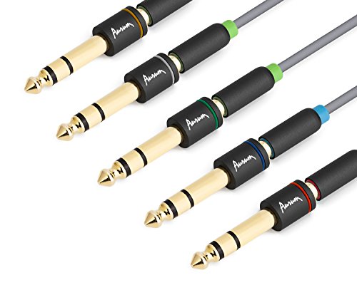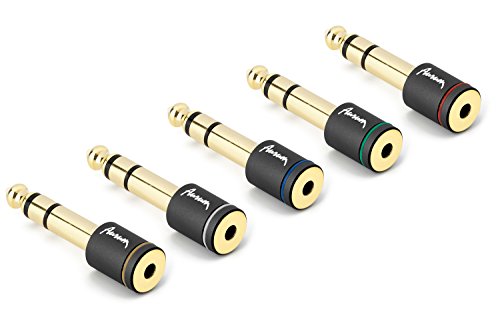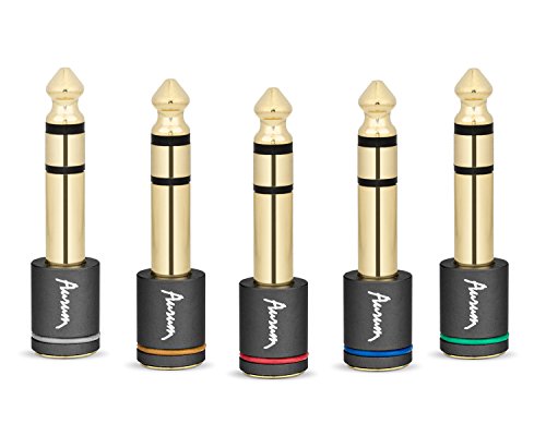 Aurum Cables 6.35mm Male to 3.5mm Female Gold Plated Stereo Adapter - Red, Blue, Green, Yellow and White - Set of 5