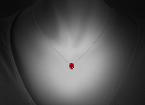 PREMIUM QUALITY : This beautiful pendant is made of 925 sterling silver with white gold rhodium plating. It's prong set with a beautiful oval shaped red nano.