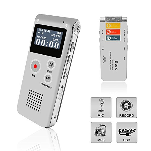 Voice Recorder, Digital Voice Recorder, eBoTrade 8GB Multifunctional Rechargeable Dictaphone, Audio MP3 Music Player with Mini USB Port (Sliver)