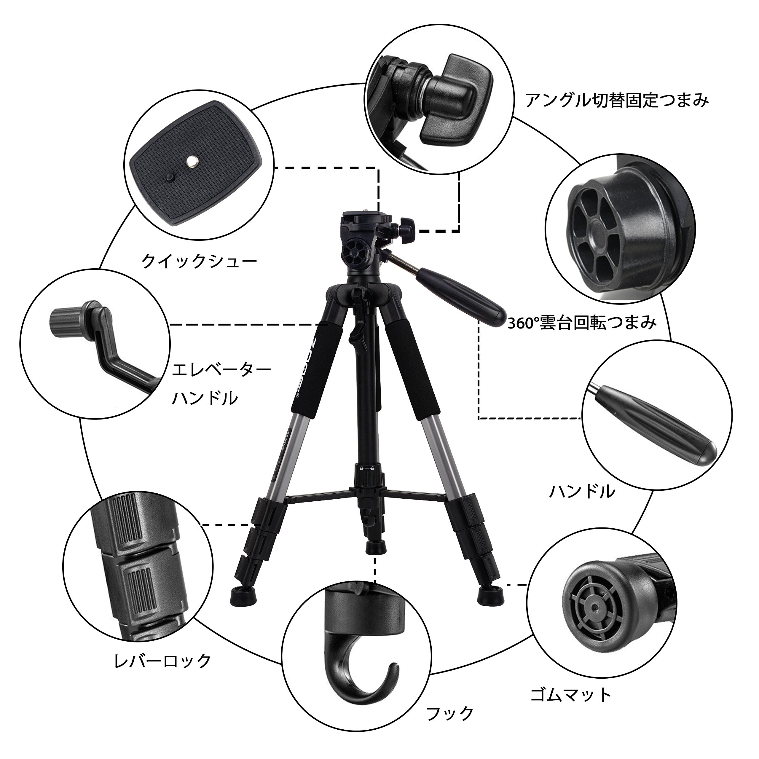 It is convenient for fine adjustment of the composition, convenient for fine adjustment of the composition, easy to change from person to landscape, easy orientation of the camera, orientation of the camera, 3-way pan head for vertical and left / right, vertical position, horizontal position, horizontal position, horizontal position