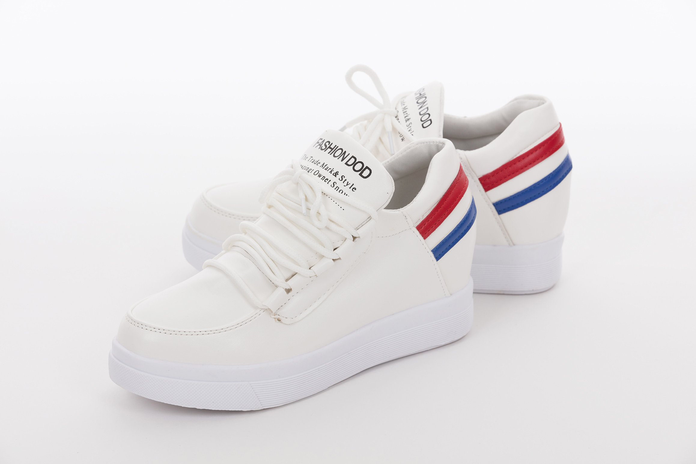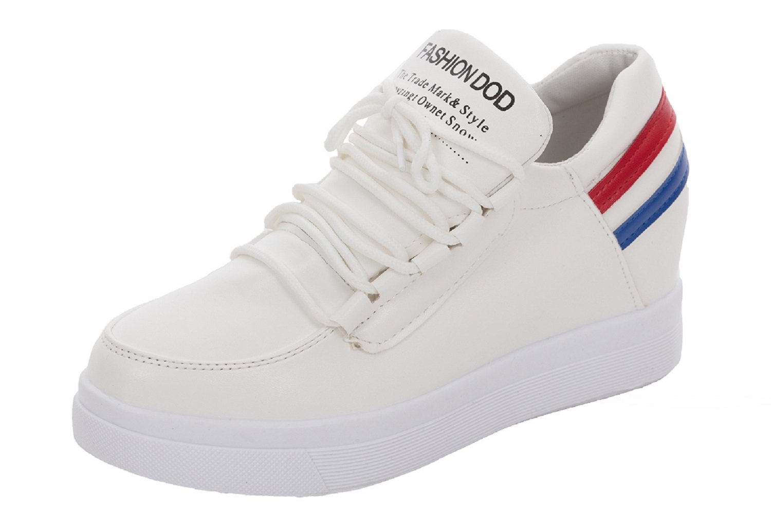 (Caenariee) Kaenarie Women's Thick Bottom Low Cut Sneaker White Lace-Up Incorporated in Inheritance Line