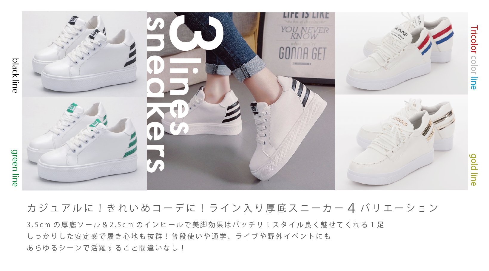 3.5 cm thick bottom sole & 2.5 cm insole will make you look good on your legs ♪