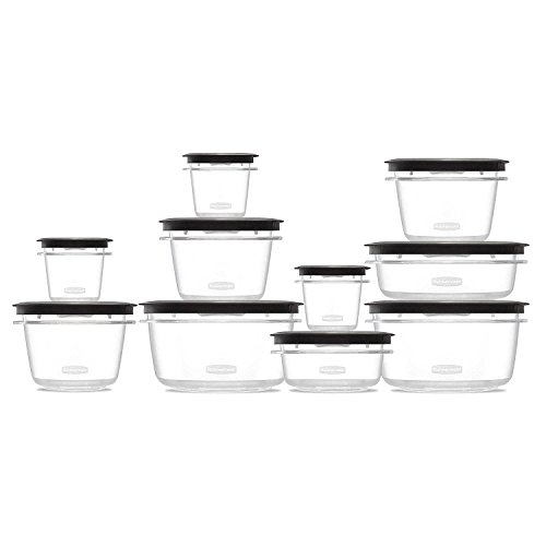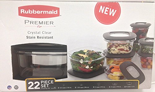 Putting away leftovers is a snap with this Rubbermaid 22 piece Premier Storage Set. Set includes 11 leak-proof containers in five sizes ranging from half-cup to 5-cup capacity, so you'll always have just the size you need. Set includes sizes: (2) 5-cups, (1) 3-cups, (3) 2-cups, (3) 1.25-cups, (2) 0.5-cups.