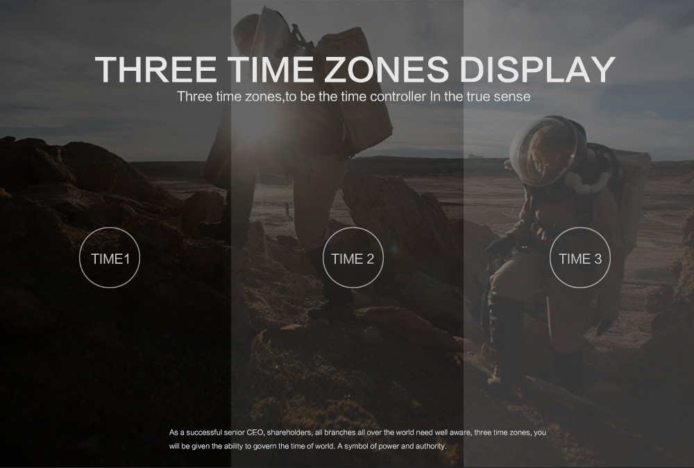 | Triple Time Zone Jam ini memiliki 3 buah penunjuk jam analog yang berfungsi untuk melihat 3 waktu yang berbeda. Cocok untuk Anda yang sering berpergian keluar negeri.