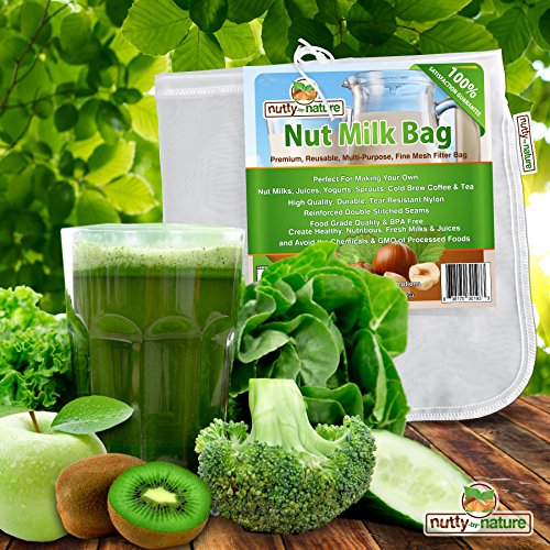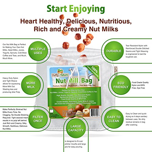 -. Feature : All purpose fine mesh strainer bag suitable for much more than just almond milk! The finely woven mesh provides superior straining action while letting liquids effortlessly filter through, pulp free. / Perfect For Making Your Own Nut Milks, Seed Milks, Juice Straining, Yogurts, Cheese, Sprouts, Cold Brew Coffee and Tea / The ideal multi-purpose kitchen straining tool for the individual, professional chef or health conscious. Create fresh, nutritious, silky smooth, rich and creamy nut, seed and coconut milks. Our bag is equally suited for cold brew coffee, tea, cheese making, sprouting, yogurt and more. / Stop wasting money on inferior quality, processed nut milks loaded with preservatives, chemicals and sweeteners. Fresh homemade nut milk does not require these additives! Nature already perfected it; you just need to harvest that wholesome, delicious goodness. No longer be constrained by the carton! / One of our bags can help reduce the waste from store bought carton nut milks. Our bag is the eco-friendly way to enjoying a healthy, tasty lifestyle. Start tasting the difference, drink fresh, pure nut milks!