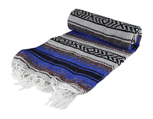 Authentic 6' x 5' Mexican Siesta Blanket (Random / Assorted) (Blue)