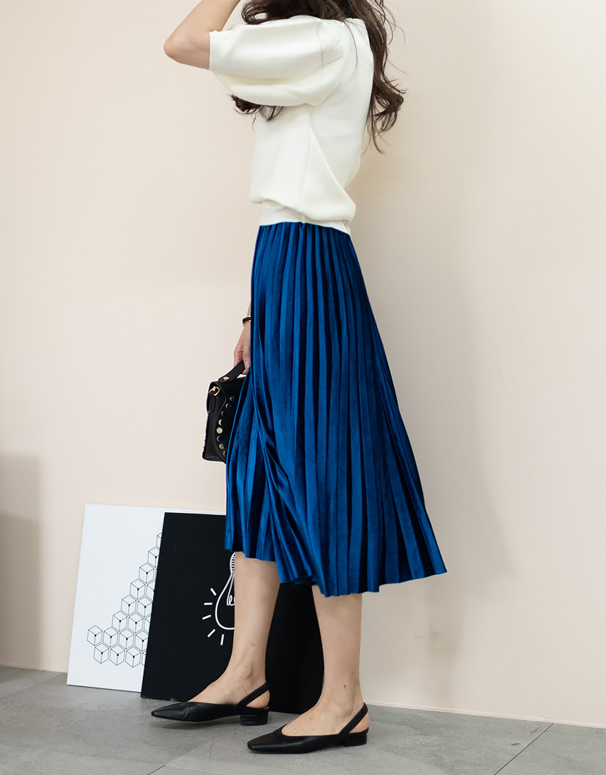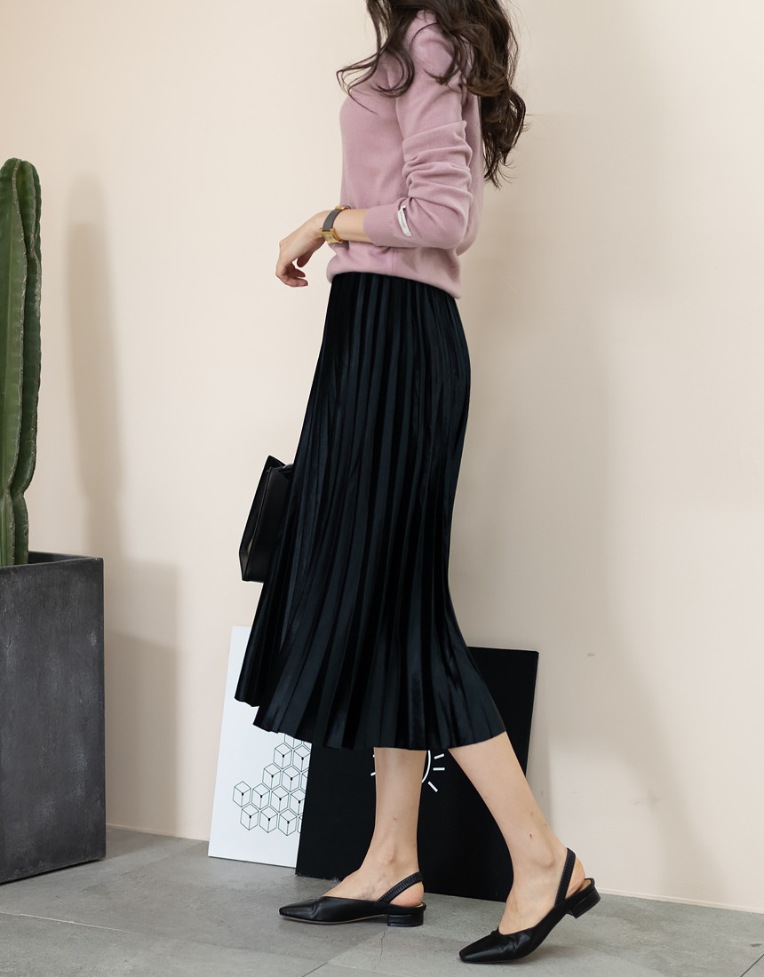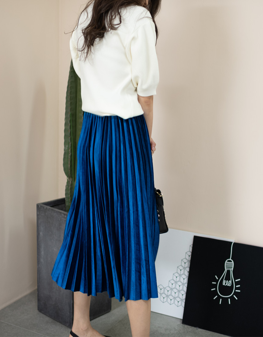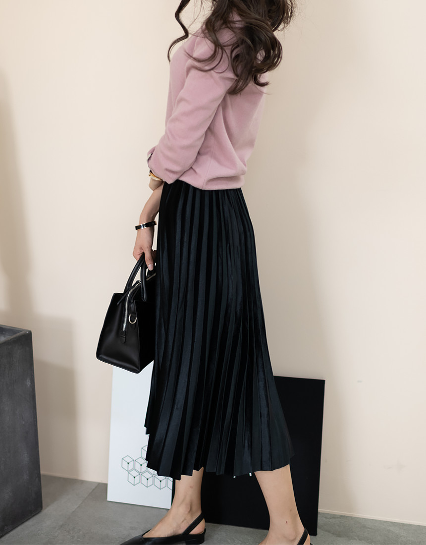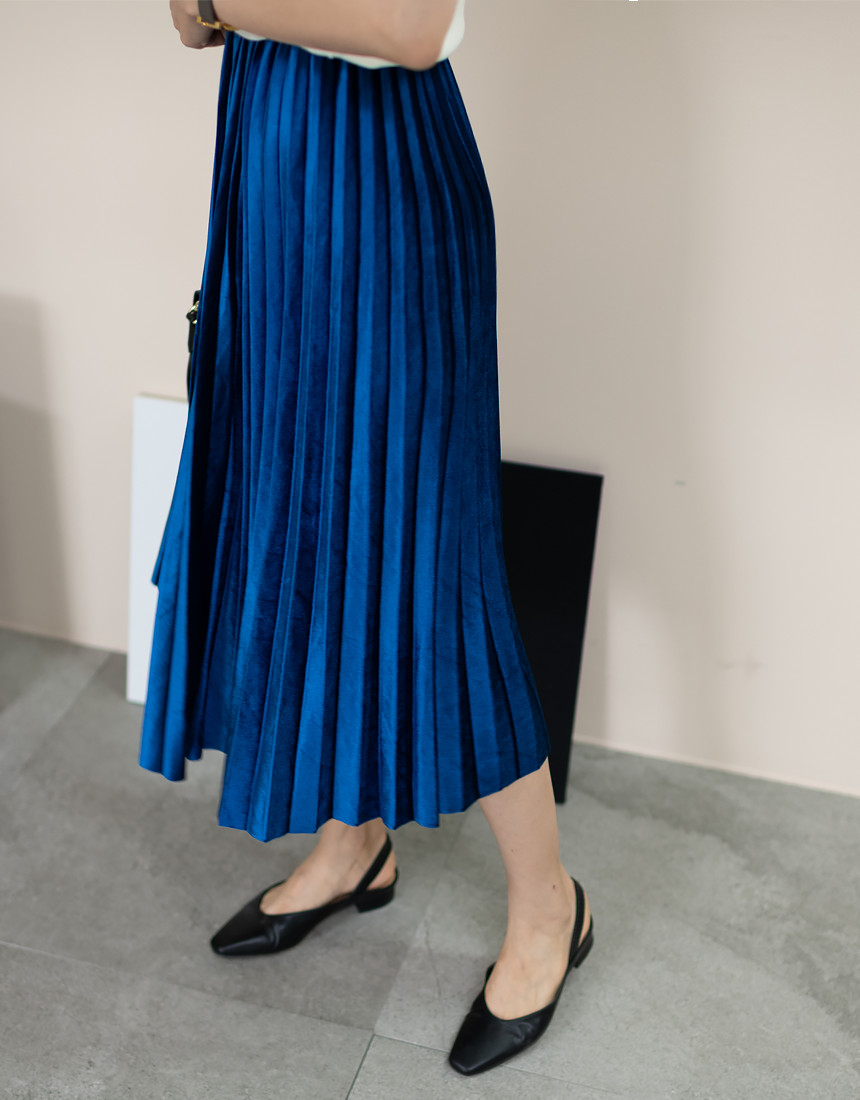 #벨벳 주름 밴딩 롱 스커트