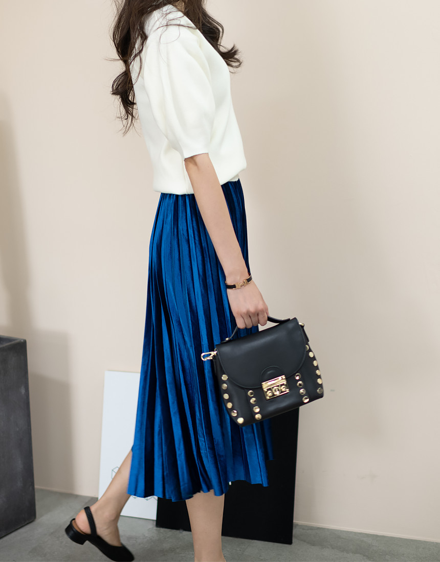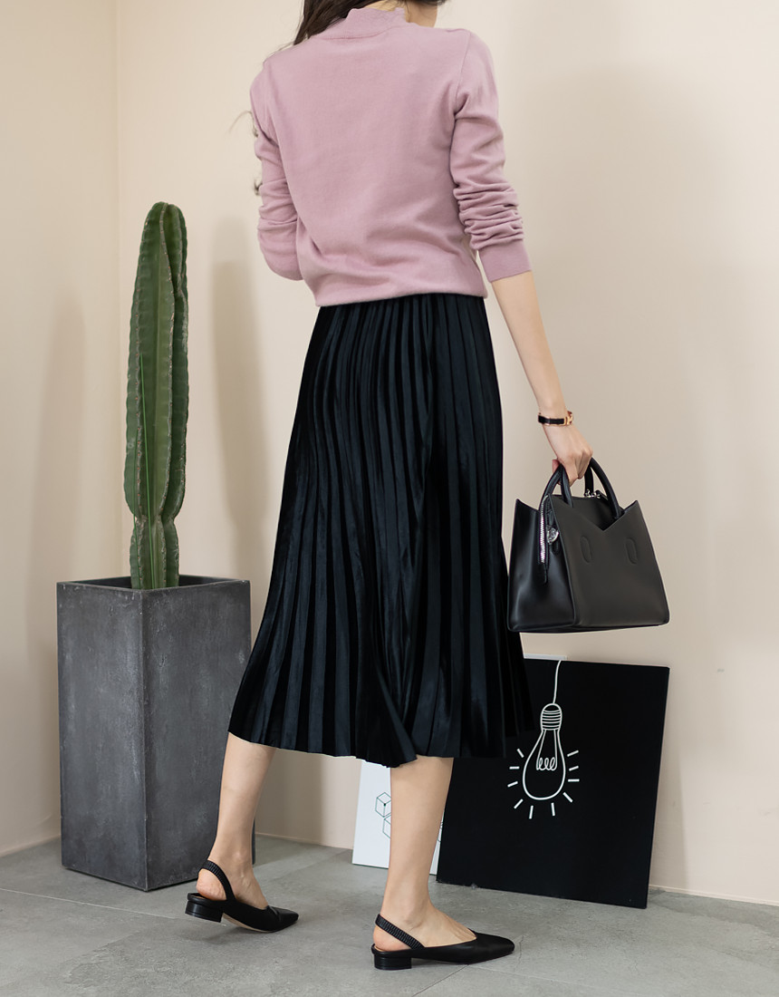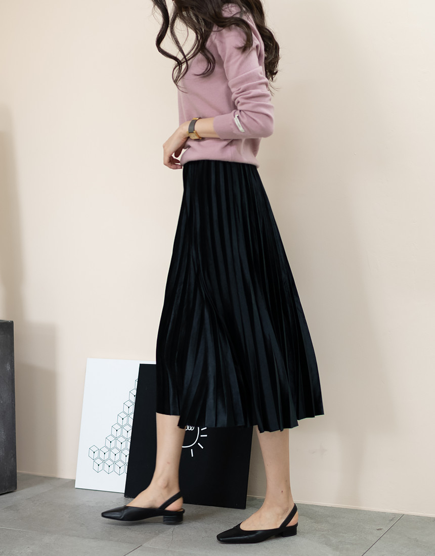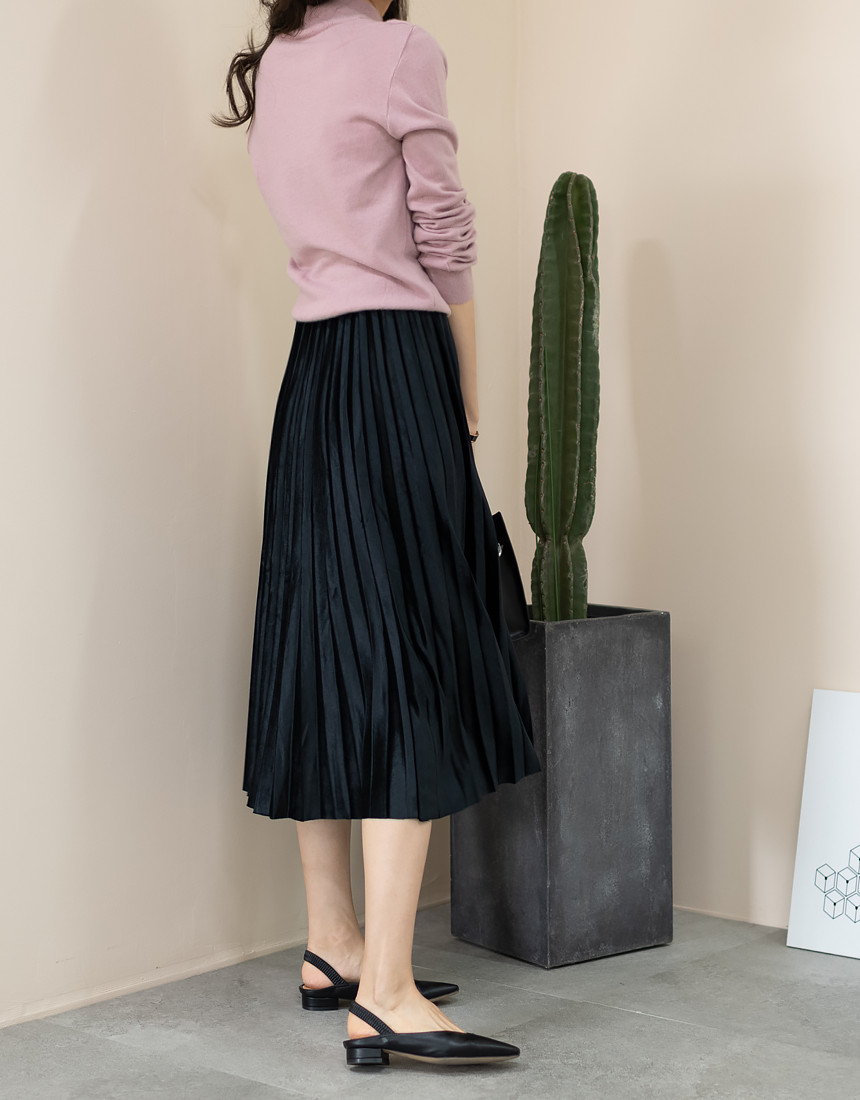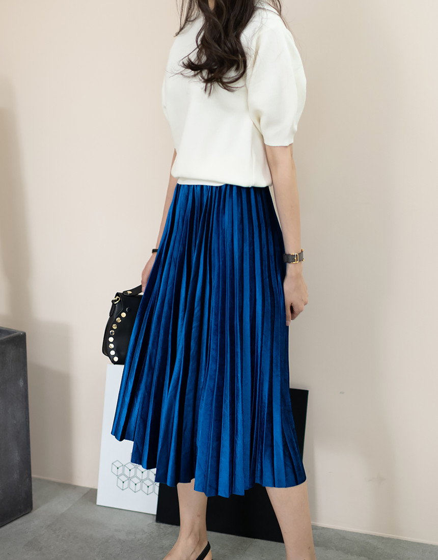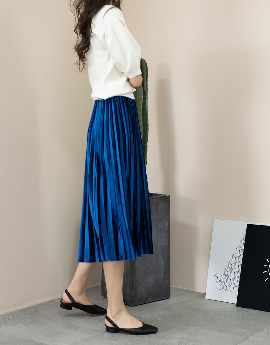 #벨벳 주름 밴딩 롱 스커트