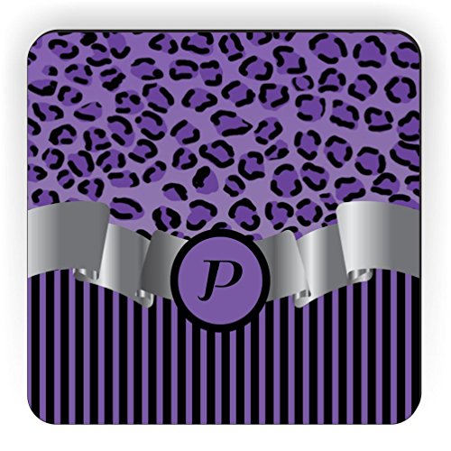 Rikki Knight Letter "P" Initial Purple Leopard Print and Stripes Monogrammed Design Square Fridge Magnet