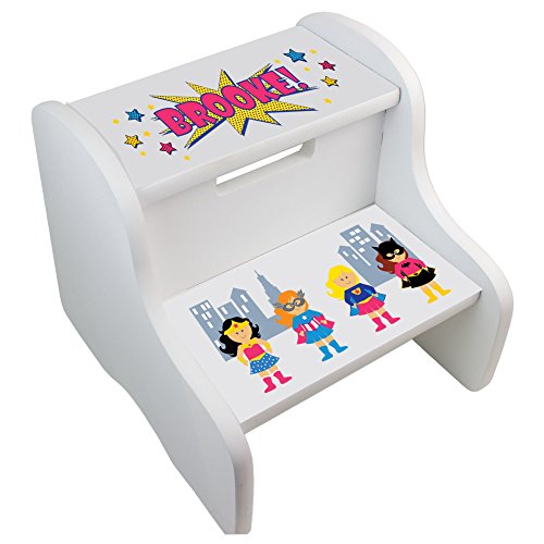 -. Title : Personalized Girls Superhero White Two Step Stool