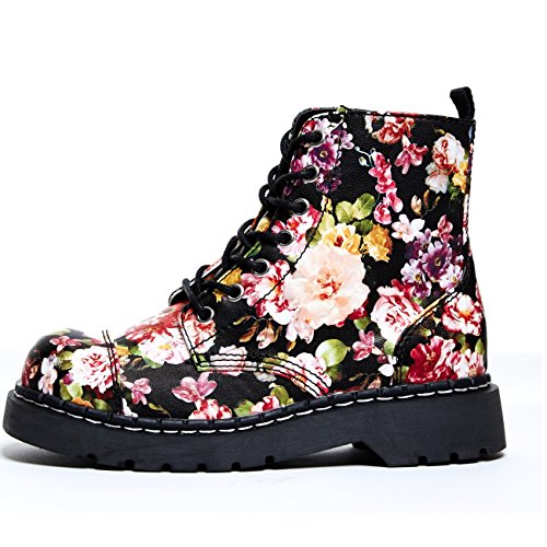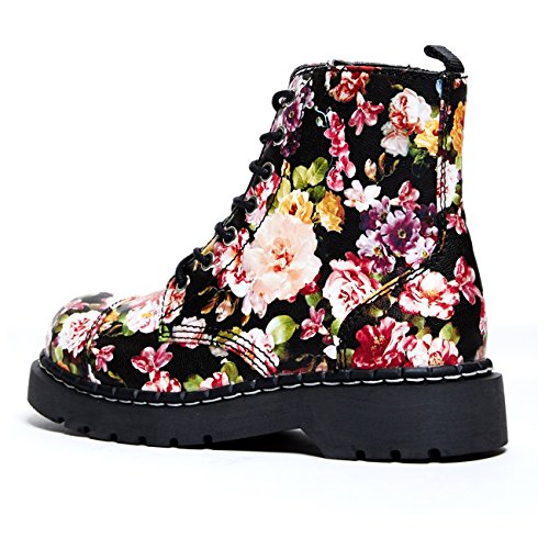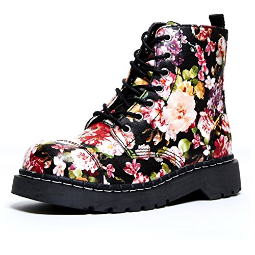 Sold in US Women's sizes Cushioned insole for added comfort Soft, black lining Vegan friendly Inside zipper for ease and comfort Brand : T.U.K. Item model num : Floral Print Combat Boot MPN(PartNumber) : T2250 EAN : 0840559142543 Product Dimensions(LxWxH) :