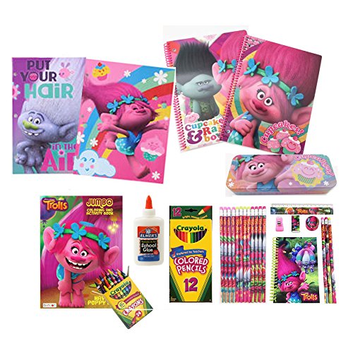 Studio : Generic Set Publisher : Generic Set Binding : Toy Product Description This is an amazing Dreamworks Trolls Set for your Trolls loving children. It includes many of the popular Trolls items along with some Back-To-School essentials. Limited Quantities so don't wait until the last minute. This Set Includes: 1- Trolls Jumbo Coloring and Activity Book - Troll Life 2- Trolls Spiral Notebook (50 sheets / 100 pages) 2- Trolls Character Folders for 3-ring Binders 1- Trolls Tin Pencil Case 24- Crayola Non-Toxic Crayons 12- Crayola Non-Toxic Colored Pencils Trolls Notepad set - 1 Notepad, 3 pencils, 1 sharpener, 1 Eraser, 1 Straight Edge, 1 clip 0