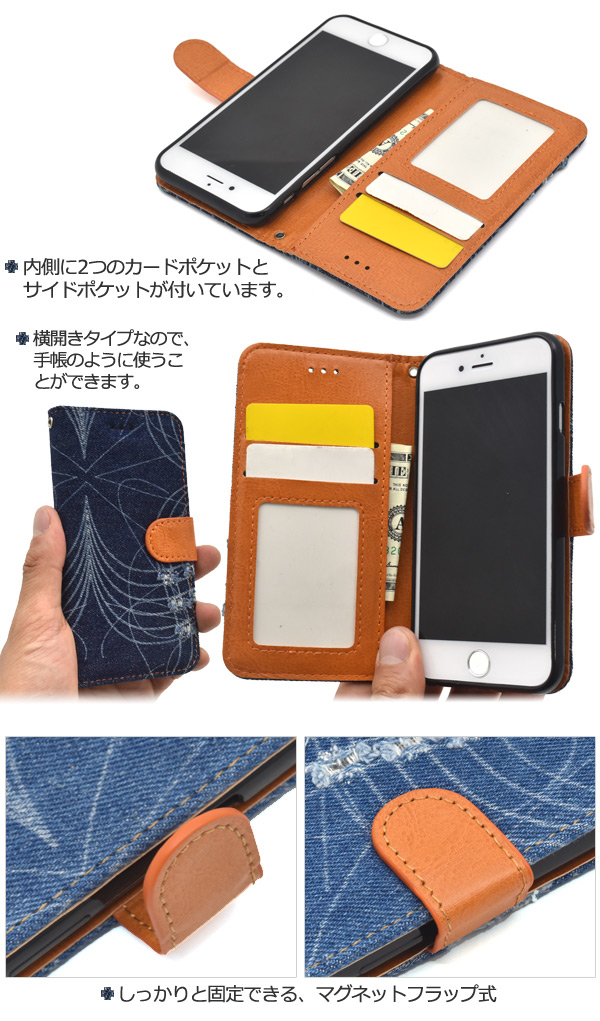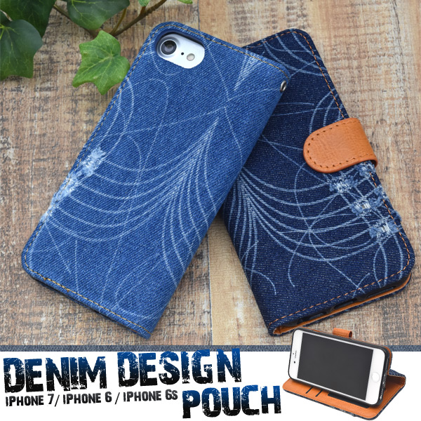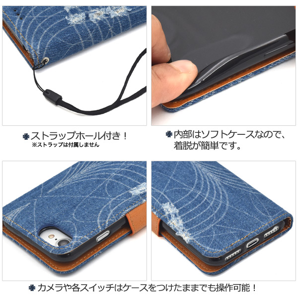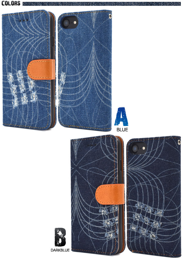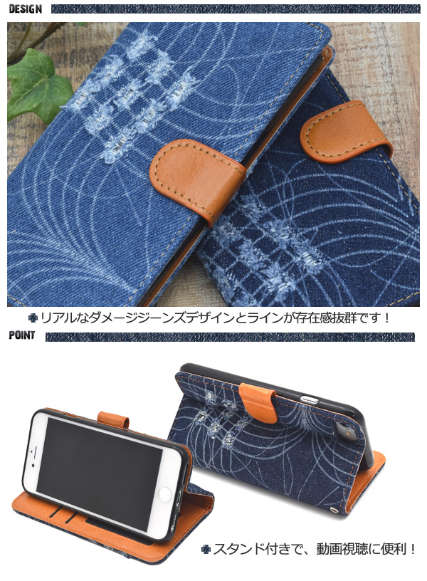 ダメージデニムデザイン手帳型ケース
