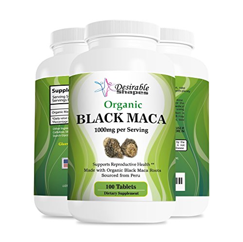 Contains Organic Peruvian Black Maca Root 1000mg per serving size, 100 Tablets per bottle