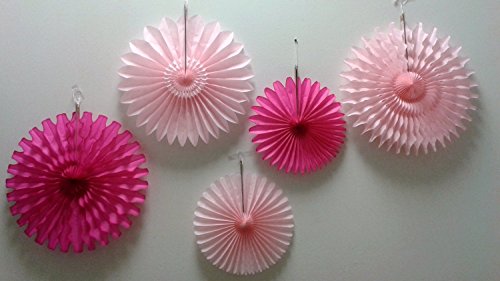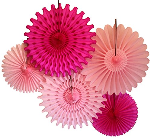 Tissue Paper Fan Collection - 5 Large Assorted Fans (Pretty in Pink, 18 and 13 inches)