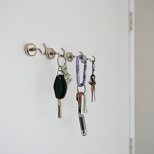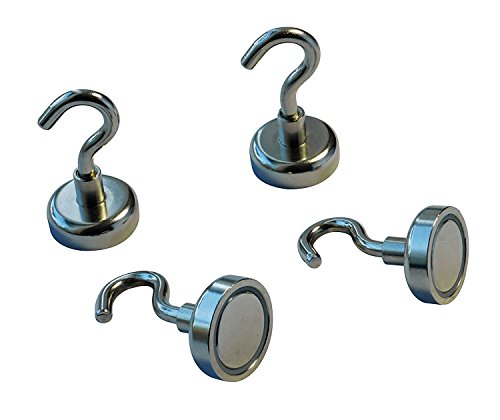 Magnetic Hooks - Heavy duty - Premium quality - 4 Pack of 40lb Strong Neodymium Hooks. FREE BONUS 4x3m adhesive pads! Organize Your Place Now!