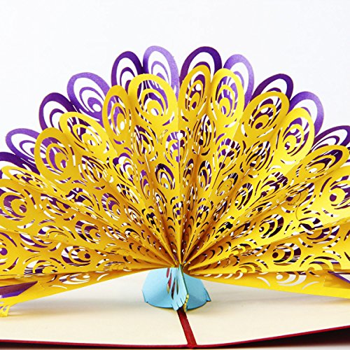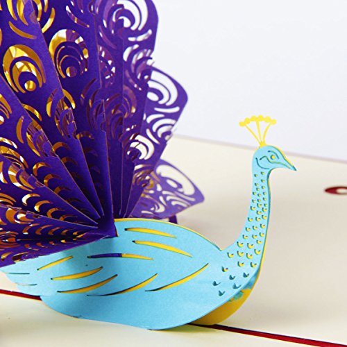 Paper Spiritz Peacock Pop up Father's Day Card from Duaghter Wife Son 3D Thank You Card Kids Birthday Greeting Card with Envelope Laser Cut Kirigami Gift for Wedding Anniversary Graduation Get Well