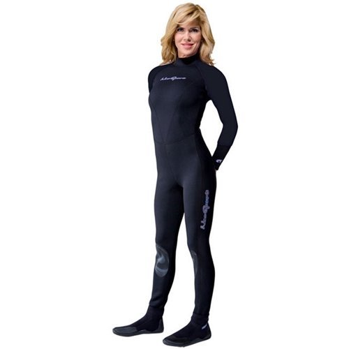 Amazon.com The Women's Ultra-Thin 1-millimeter Neoprene Dive Suit provides divers with a stretchy and comfortable layer of insulation that can be worn on its own in warm waters or as an additional layer under another wetsuit in cold water. Designed for easy on/off, the suit features a generously cut back zipper with a heavy-duty #10 YKK zipper, an adjustable Velcro collar, and Lycra trimmed wrist and ankle seals. Built for long-term durability, the suit features sturdy and smooth flatlock seams with spot taping at key intersections and flexible, thermal bonded knee-pads for protection. Additional details include an internal zipper pocket and tear-away sizing tags. Features and Specifications: - Premium neoprene construction