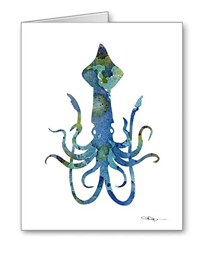 -. Feature : "Squid" artwork by watercolor artist DJ Rogers. / Note card size is 4.25 x 5.5 inches / Set of 10 note cards with matching white envelopes. / Note cards are blank inside for your personal message. / Suitable for framing.