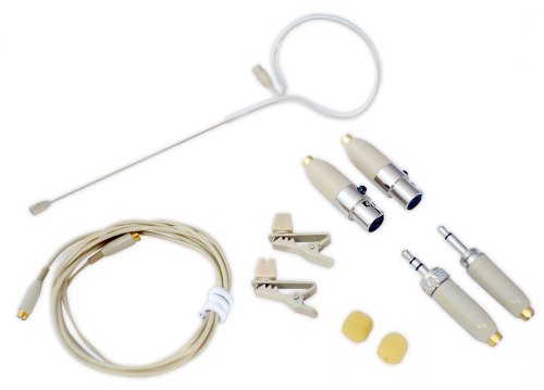 -. Feature : Detachable cable - Adjustable drip ring helps protect mic element from sweat - Includes adapters for Sennheiser type 3.5mm plug,Samson,Audiotechnica, AKG type 3pin Mini XLR, Shure type 4pin Mini XLR,Pyle 3.5mm Plug, belt pack systems / Color: Beige (tan) - Fits left or right ear and retaining band holds mic in place / Cable Length: 48-Inches - Includes two windscreens, clothing cable clip and carry case / Headset can fit over either ear - Omnidirectional pickup pattern, off-axis linear frequency response / Micro-miniature condenser with 2.5mm capsule - Four cable adapters for compatibility with most popular wireless transmitters