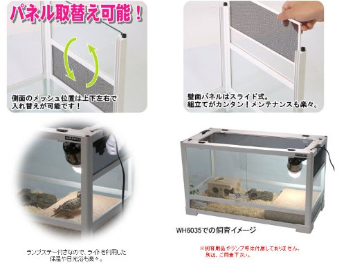 It is an assembled glass cage ideal for breeding small reptiles, amphibians, insects and so on.