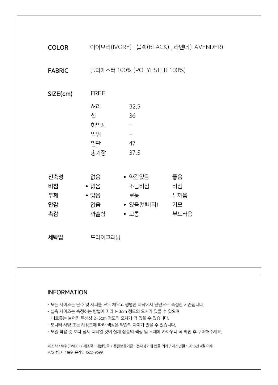 허리 뒷 밴딩처리와 안감이 속바지로 되어있어 걱정없이