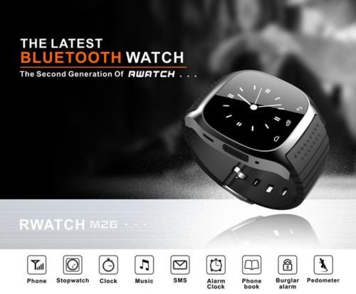 This is a new Bluetooth Smart M26 Watch which is compatible with all Bluetooth V3.0(Minimum version 3.0) or above. It can work with Android with all functions and download the app. This watch can be connected by bluetooth with smartphones, tablets and PCs, such as Sumsung S3, S4, Note 2, Note 3, Note 4,LTC,LG etc. Features 1.48" Capacitive Touch Screen TFT LCD Time/Date/Week/Battery state display Ringing reminder when you receive a call Ringing reminder once your mobile phone disconnected Display the number or name of incoming calls Answer or Dial calls from watch Support hands-free calls, phone book Play the music in your phone Sync SMS/call history(only for android phone, you need download apk) Ring reminder when your smart phone receive a message (including Wechat, Facebook, Twitter, WhatsApp, Skype, and so on. Only for android phone.) Anti-lost alarm function: When cellphone left watch alarm automatically, after a certain distance to avoid lose the phones Remote taking photo function: You can control your cellphone to take photo from the watch.(only for android phone) Stopwatch, Altitude Meter, Passometer, Photograph, Barometer, Vibration Bluetooth Version: V3.0+EDR Bluetooth Protocol: A2DP + HFP 1.5 + HS P 1.2 Range of Frequency: 2.4GHz spectrum Ambient Noise: ¡Ü75dB Transmitting Range: ¡Ý10mFeature