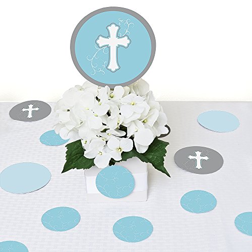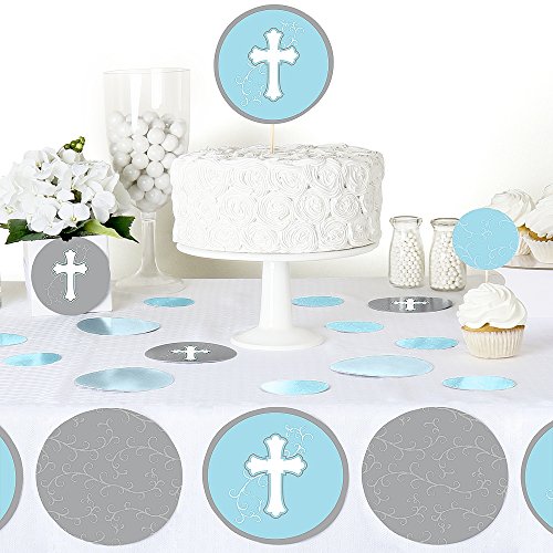 -. Title : Little Miracle Boy Blue & Gray Cross - Baby Shower Party Giant Circle Confetti - Baptism Decorations - Large Confetti 27 Count