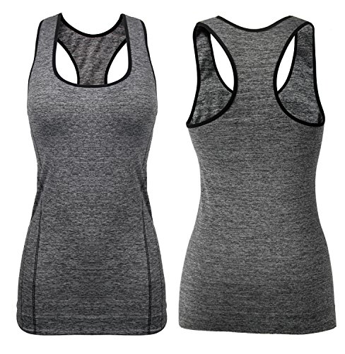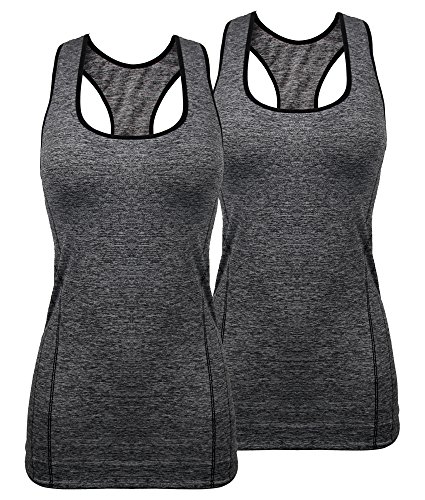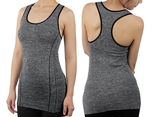 iLoveSIA (아이라부시아) 레이디스 요가 웨어 스포츠 캐미숄 브라 톱 컵 부착 탱크 탑 2 매세트 그레이 L