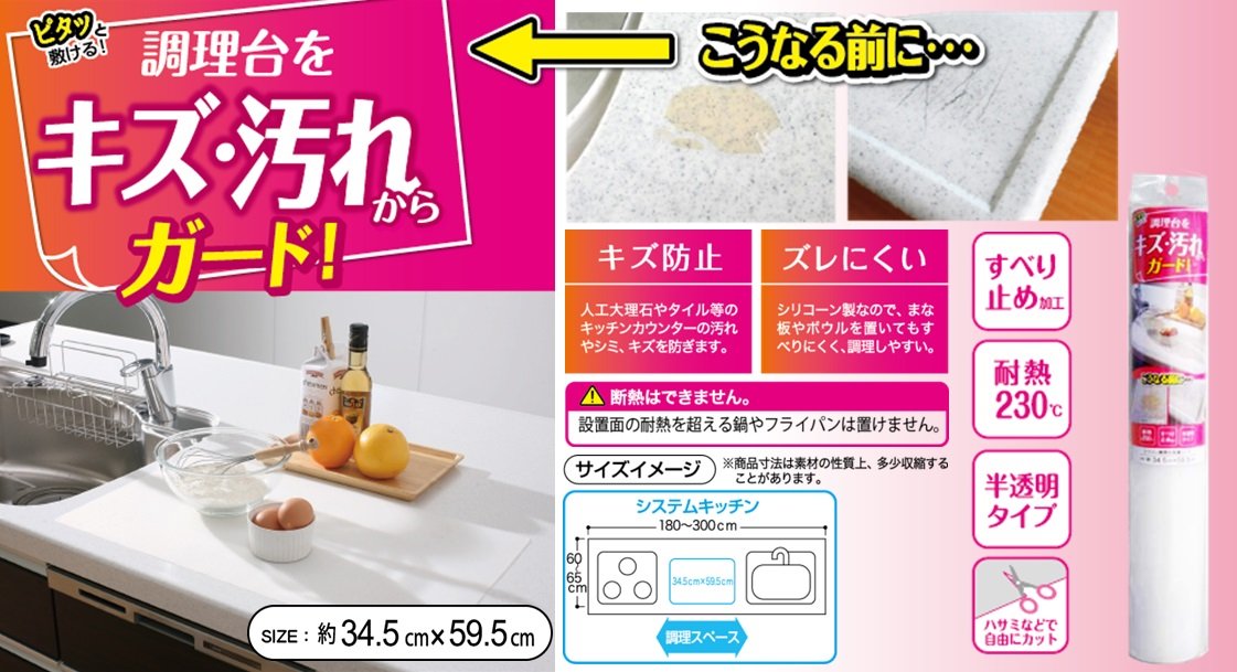 Before scratches or dirt on the cooking table, it guards firmly from scratches and dirt in the kitchen.