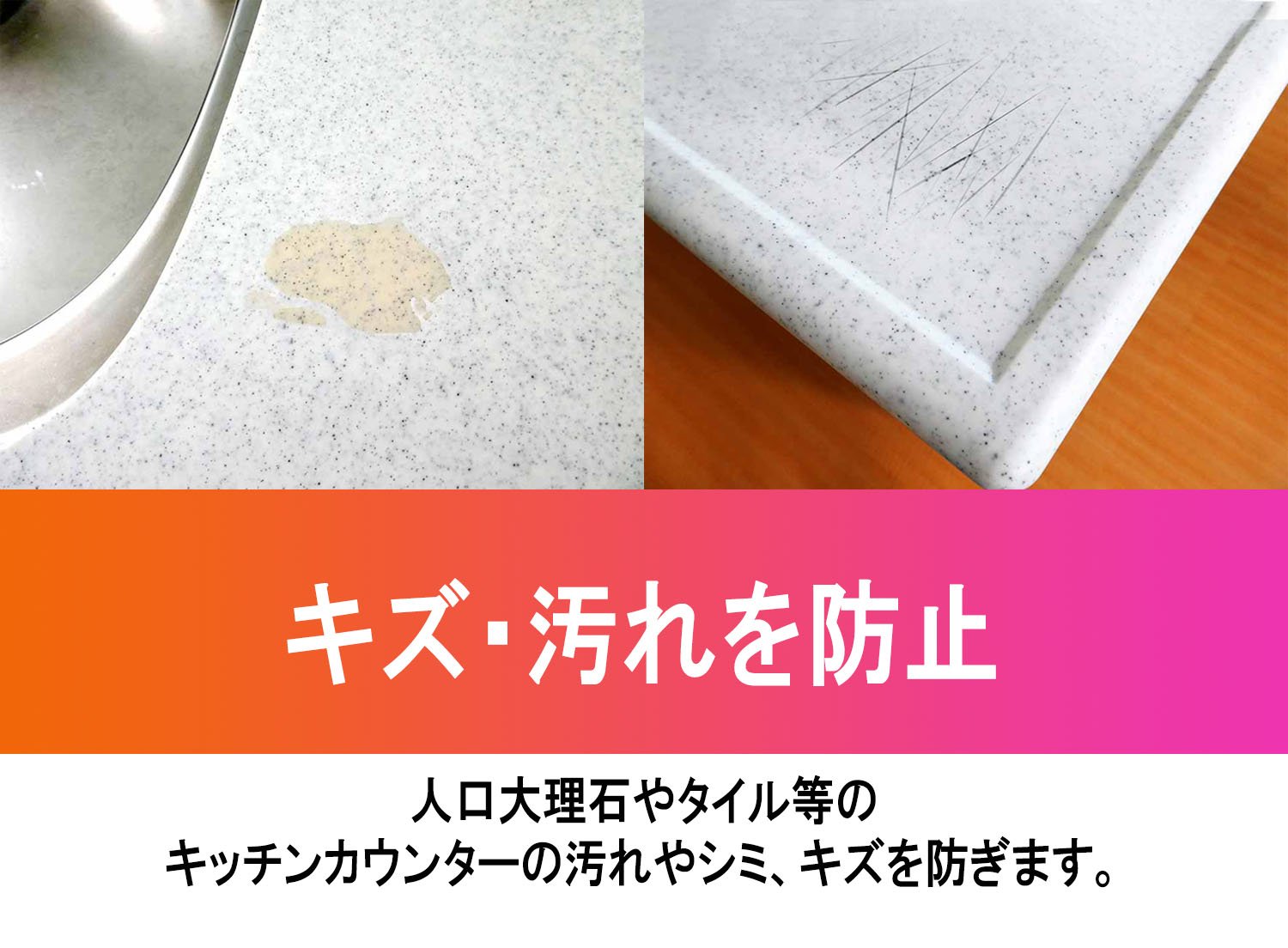 Prevents dirt and scratches on kitchen counter, such as artificial marble, tile, stainless steel etc. used on the cooking table.