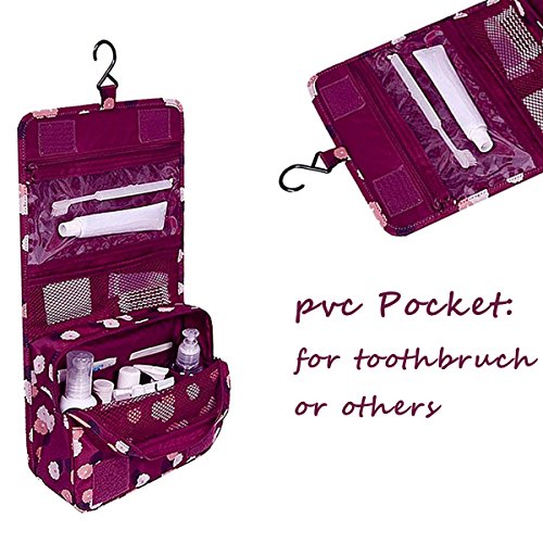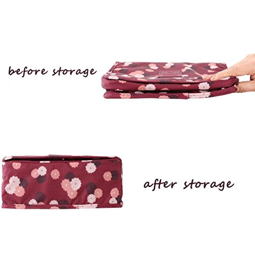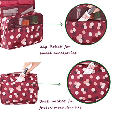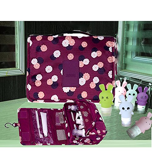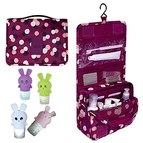 Dproptel Waterproof Hanging Travel Bag Carry Case Toiletry Bag Organizer Bathroom Storage with Silicone Leak Proof Travel Bottles For Travel Organization (Polka Dot wine Red)