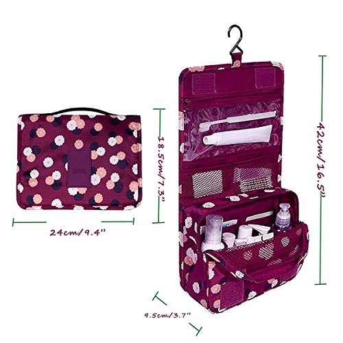 Larger size and container: Size for the Travel Organizer: 24 x 18.5x 9.5 cm(9.4"W x 7.3"H x 3.7"D)。Expand Length (hanging): 42 cm long.Multiple pockets (with small, medium, large, and long pockets) can fit all of your travel wants and needs, make everything easy to find!