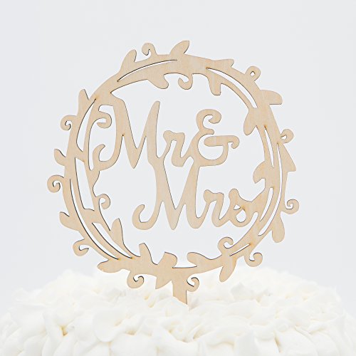 Mr & Mrs Wooden Wedding Cake Topper Small 4.5 Inches (Mr & Mrs Wreath)