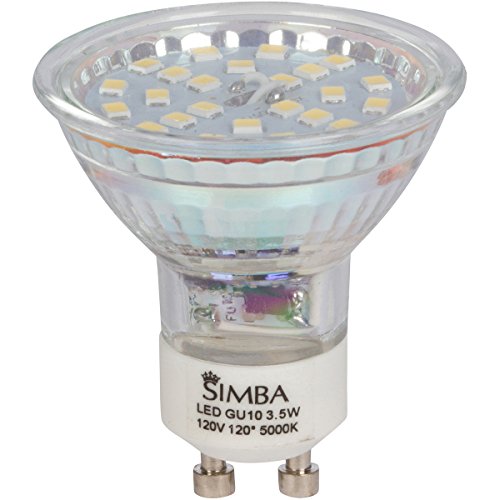 [6 Pack] Simba Lighting LED GU10 Spotlight 3.5W 380lm 50W Halogen Equivalent 120° Beam Angle 120V for Accent Light, Track Light, Twist-N-Turn Base, Glass Cover, Non-Dimmable Daylight 5000K