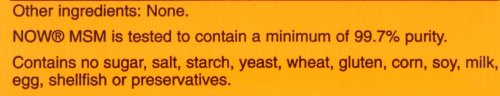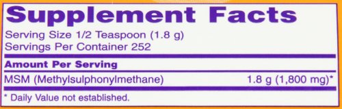 MSM (Methylsulphonylmethane) is a natural form of organic sulfur found in all living organisms. This natural compound, researched since 1979, provides the chemical links needed to form and maintain numerous different types of tissues found in the human body, including connective tissue such as articular cartilage.* While MSM is a natural componenet of almost all fresh fruits, vegetables, seafood and meat, food-processing methods reduce sulfur levels, making supplementation more important than ever.Feature