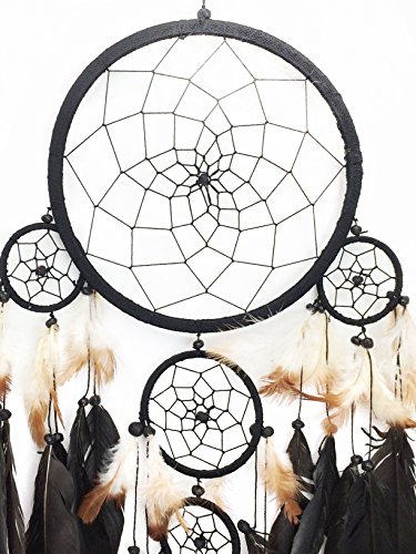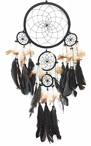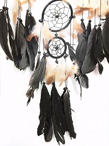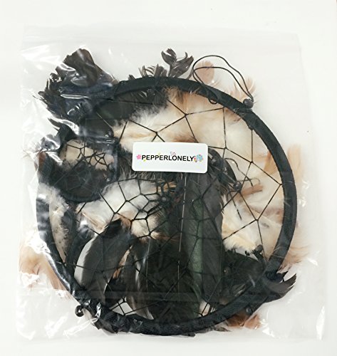 PEPPERLONELY Black, White, and Brown Feathers Dream Catcher 8.5 Inch Diameter, 28 Inch Long