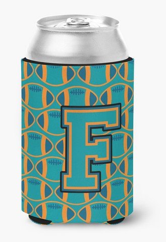 Caroline's Treasures CJ1063-FCC Letter F Football Aqua, Orange and Marine Blue Can or Bottle Hugger, Multicolor